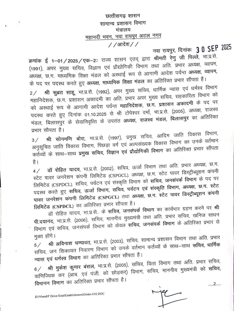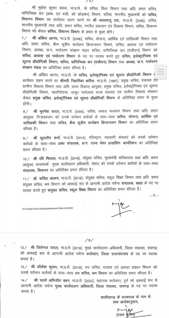 बड़ी खबर : बड़ी प्रशासनिक सर्जरी, 14 आईएएस के विभाग बदले, देखिए सूची