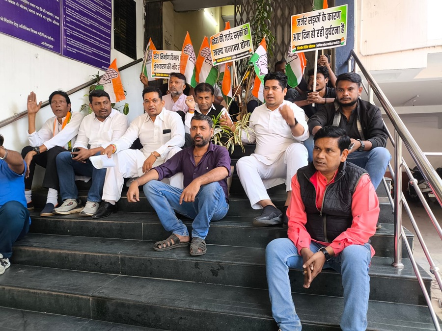 ब्रेकिंग : कांग्रेस नेता चौहान का जोरदार धरना प्रदर्शन, जर्जर हो चुकी सड़कों के विरोध में लोक निर्माण विभाग के ऑफिस में किया प्रदर्शन, मंत्री बंगला घेराव करने की चेतावनी