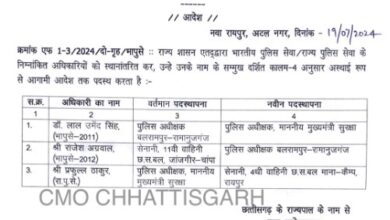 बिगुल रायपुर. राज्य सरकार ने आज तीन आइपीएस आफिसर के स्थानांतरण करते हुए उन्हें नई पदस्थापना दी है. आइपीएस प्रफुल्ल…