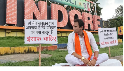 दो माह पहले हैदर से हरिनारायण बना युवक गुरुवार को पलासिया चौराहे पर धरने पर बैठ गया। हाल में उसके घर कुछ लोगों ने हमला किया था और दरवाजा तोड़ने की कोशिश की थी। हरिनारायण का कहना है कि उसने धर्म बदला,इससे नाराज कुछ लोगों ने उसके घर पर हमला किया और सर तन से जुदा कर देंगे के नारे भी लगाए, लेकिन पुलिस ने आरोपियों के खिलाफ सख्त एक्शन नहीं लिया और आपसी विवाद बता रही है।