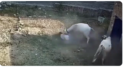 वीडियो के मुताबिक ईद त्यौहार के दिन एक कसाई एक बैल को काटने के लिए कत्लखाना ले जा रहा था, इसी दौरान दूसरा सांड़ भड़क गया और उसने कसाई पर हमला कर दिया. उसे सींगों से उठाकर मार डाला.