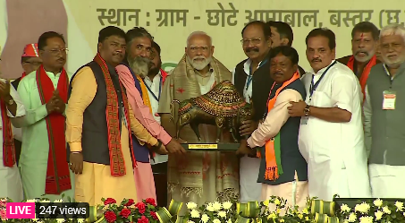 जगदलपुर. प्रधानमंत्री नरेंद्र मोदी ने बस्तर के आदिवासियों को संबोधित करते हुए आज कहा कि पिछले दस साल में देश ने जो प्रगति की है, उसमें आपका भी योगदान है. छत्तीसगढ़वासियों ने मोदी की गारंटी पर मुहर लगाई है. आपने यहां भाजपा की सरकार बनाई, इसके लिए आभार. पूरा देश कह रहा है कि फिर एक बार, मोदी सरकार.
