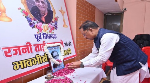 मुख्यमंत्री साय ने इस दौरान कहा कि रजनी ताई का निधन पूरे समाज के लिए अपूरणीय क्षति है। आपातकाल के कठिन दौर में उन्होंने जिस साहस और धैर्य का परिचय दिया, वह प्रेरणादायी है। अपने कार्यकाल में उन्होंने जनता के हितों और रायपुर के विकास को सर्वोच्च प्राथमिकता दी। सादगी, ईमानदारी और समाज से गहरे जुड़ाव के कारण उन्हें विशिष्ट पहचान मिली। वे महिलाओं और वंचित वर्गों के अधिकारों के लिए निरंतर सक्रिय रहीं। साय ने ईश्वर से दिवंगत आत्मा की शांति के लिए प्रार्थना की।